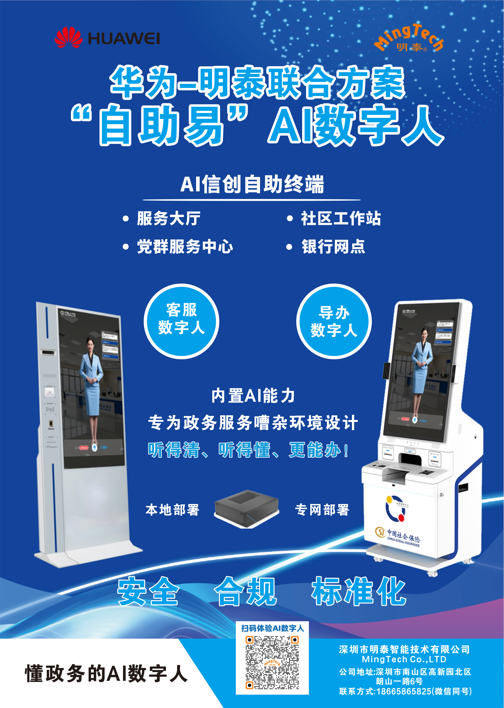 明泰智能与银河麒麟合作,推出了基于国产高性能工控机与服务器的社保智能服务解决方案。该方案结合了银河麒麟的跨平台SDK与明泰的读卡技术,与社保系统完美集成,灵活适用,可提升社保服务效率与质量,推动社保管理现代化。